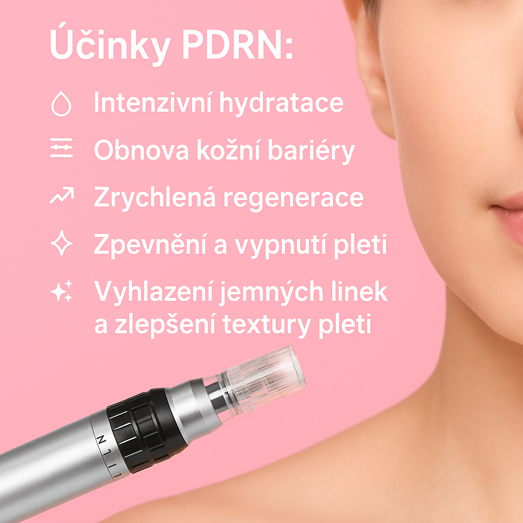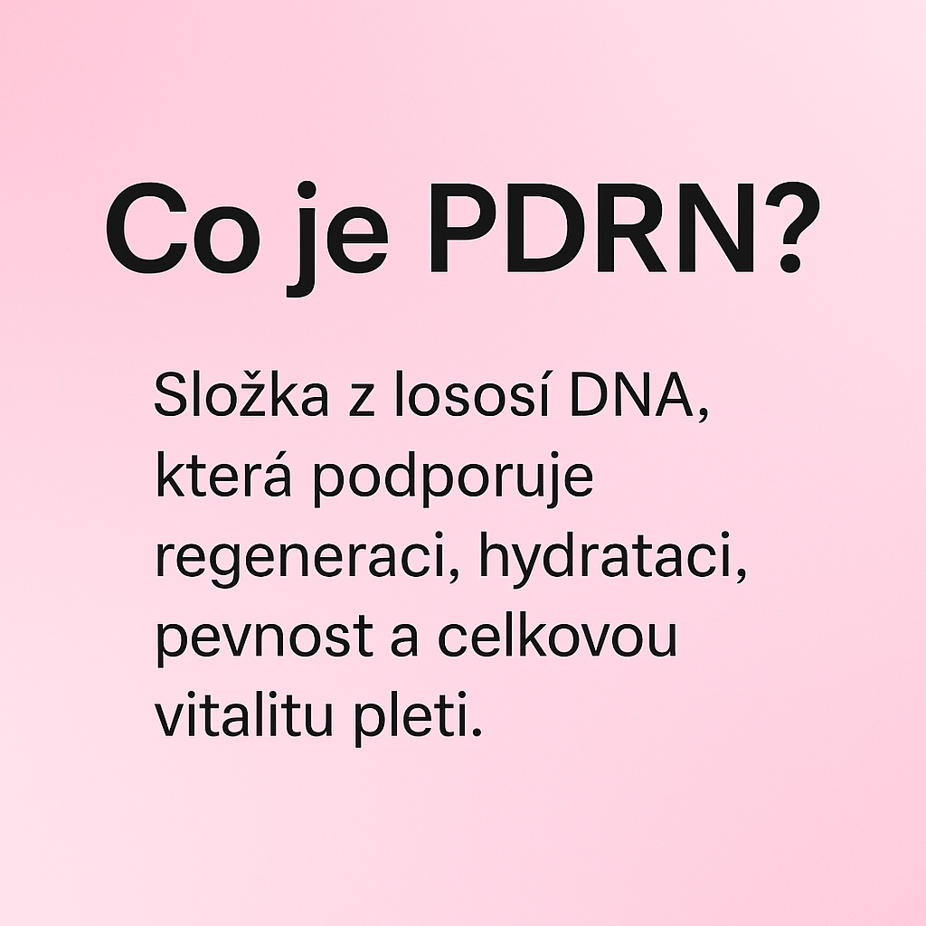PDRN (Polydeoxyribonukleotid) je cenná složka získaná z lososí DNA, která zásadně podporuje obnovu kožních buněk. Díky mikrojehličkování proniká hluboko do pleti, kde aktivuje regeneraci, zlepšuje hydrataci, posiluje kožní bariéru a napomáhá zpevnění pleti.